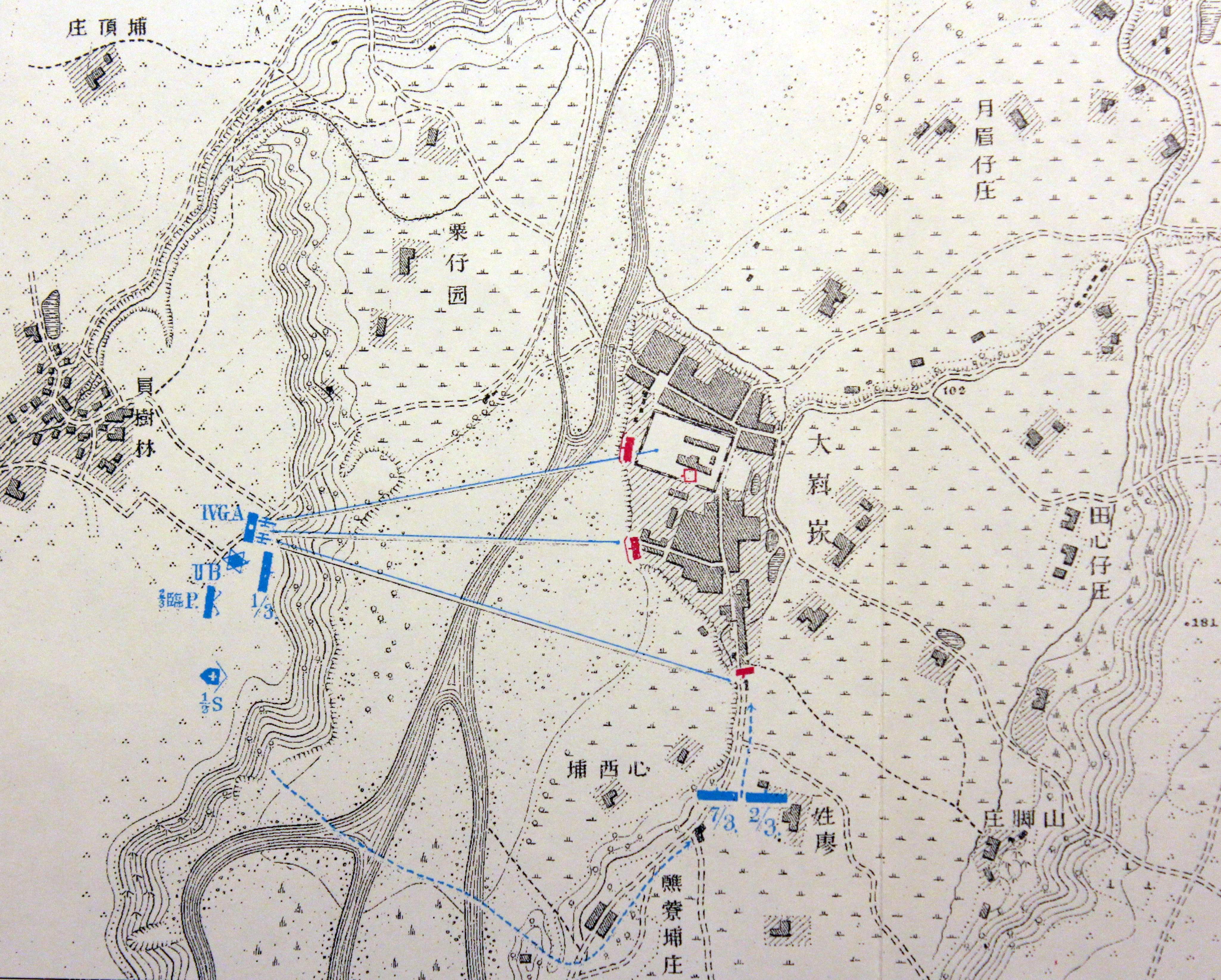 依據板橋林家管事林克成,在日人領臺當年,8月17日向總督府呈報鄰家各地租館收藏軍火器械清冊的檔案:林家的「大嵙崁租館:此館員存軍火,已被火燒,現在無存」(王學新,2014)。在《近衛師團軍醫部征台衛生彙報》,記錄了台灣總督府在分水崙戰役之後,認為「即使只是一個賊兵,都可能危害日後師團的南進以及兵站線,應一個也不留」,因此確立了日軍接下來在占領過程施行的「無差別殺戮」策略(李文良,2015,頁26)。