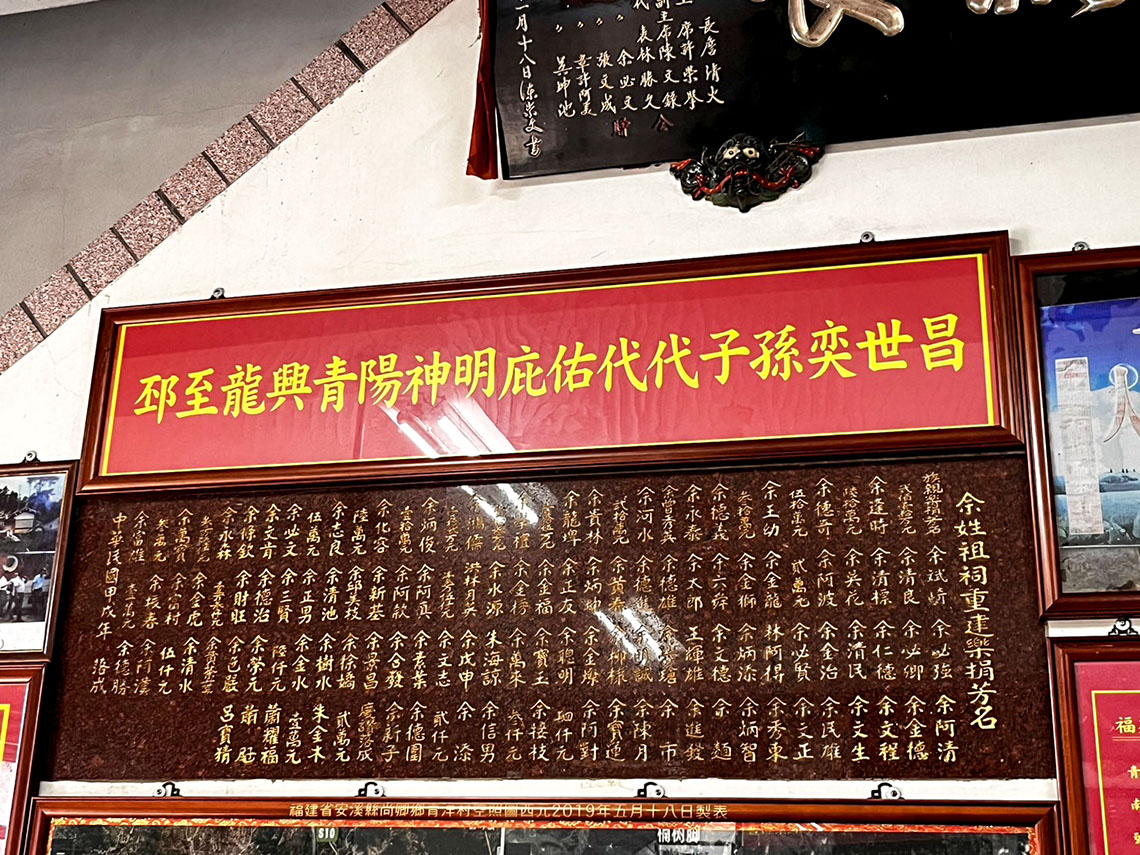 余厝位於鶯歌中湖里,地處鶯歌溪東畔,隔著鶯歌溪與曾厝相望。因余姓族人聚居而得名,在鶯歌是頗大的家族聚落。 在余厝有一座非常壯觀的三層現代式公祠余家公祠,三樓供奉神明,二樓供奉余氏歷代祖先,一樓青陽廳作為公祠神明祖先文物史館,珍藏余氏文物對聯與青陽祖厝家鄉風景,以及渡臺鶯歌崁腳余家家祠舊照。 在青陽廳中的簡介提及,余氏來臺祖先光約公於清康熙57年(1718)生於福建省泉州府安溪縣龍興里九車青陽鄉,乾隆5年(1740)隻身渡海來臺,於今桃園內壢區(昔稱崁仔腳)墾荒拓基及綿延子嗣。後人於嘉慶25年(1820)遷入新北市鶯歌區中湖里崁腳地區。 鶯歌汪洋居的建造人余海 正是出身余厝,於大正5年(1916)繼承父親的碾米廠,後來轉型經營米業盤商「余合興」字號,將鶯歌米賣到中國大陸及日本等地,藉由稻米加工的大盤交易而致富。昭和3年(1928),擔任鶯歌庄協議會第五屆協議會員。為了經營事業之便,余海 從中湖余厝搬遷到現在文化路上,並以余海 名中的「海」字為根據,藉以「汪洋即海」為名興建汪洋居,於大正7年完工,當時是鶯歌地區第一座洋樓,具有代表當地經濟發展的重要指標。 余家從一人渡海來臺,現今早已開枝散葉,族親每年定期團聚祭拜,感念神明及祖先的庇佑。 參考資料: 楊國龍,《鶯歌聚落變遷史》,新北:社團法人新北市環境文教協會,2020。 維基百科鶯歌汪洋居 https://zh.wikipedia.org/zh-tw/%E9%B6%AF%E6%AD%8C%E6%B1%AA%E6%B4%8B%E5%B1%85 台北縣鶯歌國小鄉土教學網站 https://sites.google.com/a/mail.ykes.tpc.edu.tw/local_lang/xiang-tu-de-tu-2