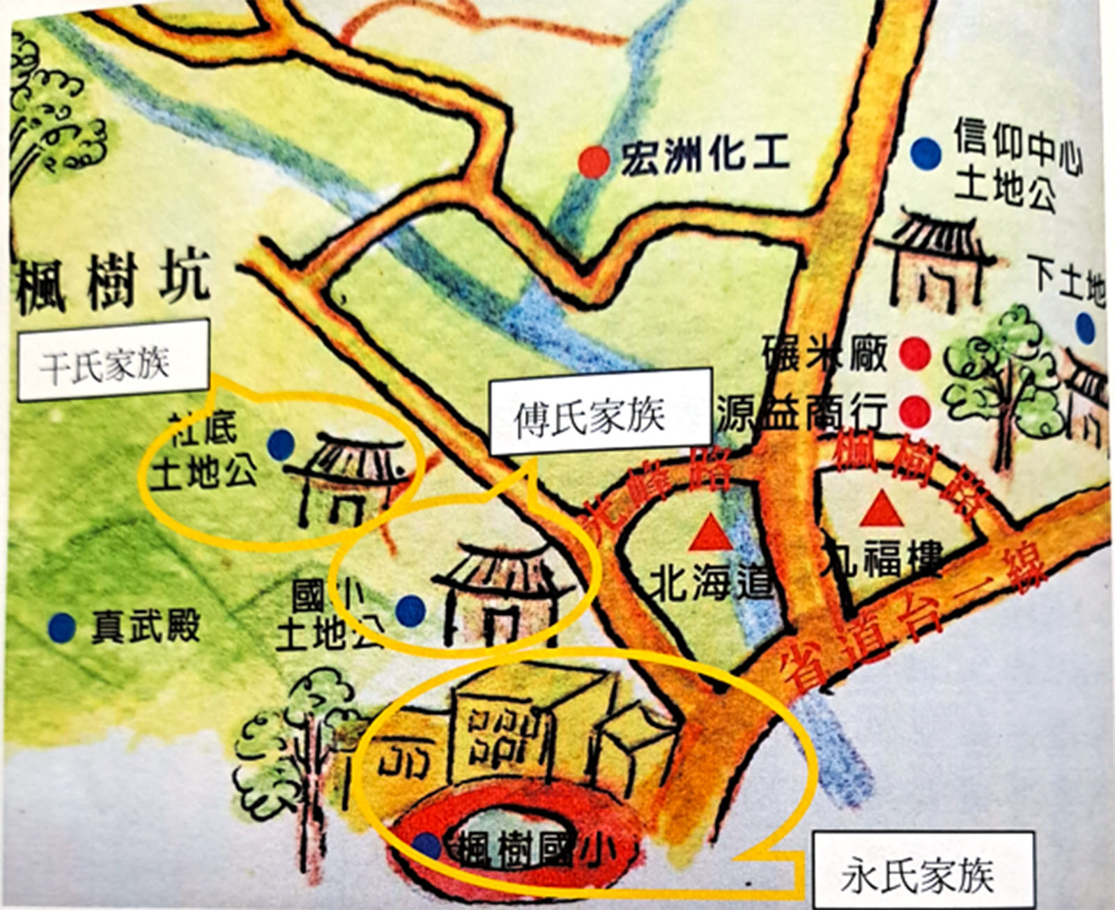龜崙社末代頭目永媽隆古厝,位於龜山區楓樹坑(今楓樹里)社底。永媽隆(1869-1936)為龜崙社「番差」永干養之孫,於明治31年(1898)承接兄長永坤隆之龜崙社頭目職務。大正7年(1918),捐獻1甲多土地給龜崙口公學校(今龜山國小)。永媽隆故居為一土墼厝的三合院古厝,正面牆壁漆上白漆,兩旁設有防盜槍口。永媽隆之子永槐蘭在此設有私塾,其孫永成章也在此成長,自其子孫永深淵於30多年前搬離後而閒置。古厝距今已有150年的歷史。 永媽隆故居後方有一座三粒石土地公,平常初1、15永家族親會來祭拜。除了對古樹和石頭的崇拜之外,更有著祭拜祖先的作用。永家會在每年農曆2月初2設立公堂,各地親人回來祭祀祖先。 清代臺灣平埔族漢化後,最容易接受的神明之一就是漢人的土地公信仰。閩粵地區漢人的土地公形象—大樹下的一顆石頭,跟平埔族的祖靈信仰—石頭公、樹王公類似。後來隨著漢化,石頭公和樹王公與漢人的土地公信仰結合,融合成目前臺灣人的土地公信仰。戰後時期楓樹坑被劃入保護區,禁止開發,所以還保留自然農業景觀,和一些比較原始的人文歷史形象(仍保有許多的三粒石土地公),反而成為一處觀察人文歷史痕跡的好所在。 參考資料: 桃園市文化創意觀光協會《番社采風龜崙社文化祭》 陳雨嵐著《台灣的原住民》,台北縣新店市:遠足文化,民93,頁34~頁37。