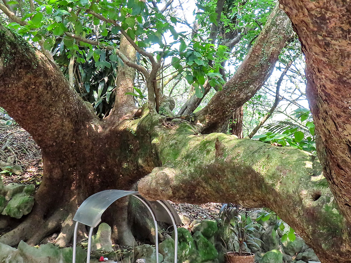 龜崙嶺山系,橫跨新北市鶯歌、樹林和桃園龜山,從鶯歌多條步道起登都可上到山脈稜線上,在鶯歌這邊被命名為光明山稜線,最高點為海拔361公尺的望湖山,係鶯歌最高峰。此處建有觀景臺,山路四通八達,可接福源步道通往龜山,中途可下到鶯歌中湖、東湖等地,也可從民和街開車直達。腹地視野遼闊,綿延不絕的青翠山巒展現眼前。此觀景臺旁有一棵至少數百歲的大榕樹,先前曾被稱為「千年大榕樹」。後來經鶯歌區公所鑑定,粗估為350歲左右。 榕樹耐乾、耐陽、耐濕、耐貧瘠,不挑剔生存的環境,會依據自己生長的地方,適度調整應該生長的方式,比如在冷洌海風吹襲下的海岸附近,或者受風的山頂,榕樹為了生存,會矮化且枝椏橫斜延展,以減少受風面和撞擊點,加上氣生根,根根垂懸,如接觸地面,氣生根會轉變成一枝枝支柱根,讓榕樹輕易就可「一樹成林」,盤據整個森林,不易撼動。 此棵榕樹樹幹壯碩雄偉,樹冠寬闊約數公尺,枝條多,一條條橫跨山頂,非常壯觀,因生長之地恰好橫跨鶯歌、樹林、龜山交界,其歸屬曾引發爭議,現確定屬於新北鶯歌地界,原本雜亂不堪的榕樹周遭,目前已加以整頓,還其乾淨清爽的空間,只餘樹下一座刷紅色油漆的鐵皮小廟。