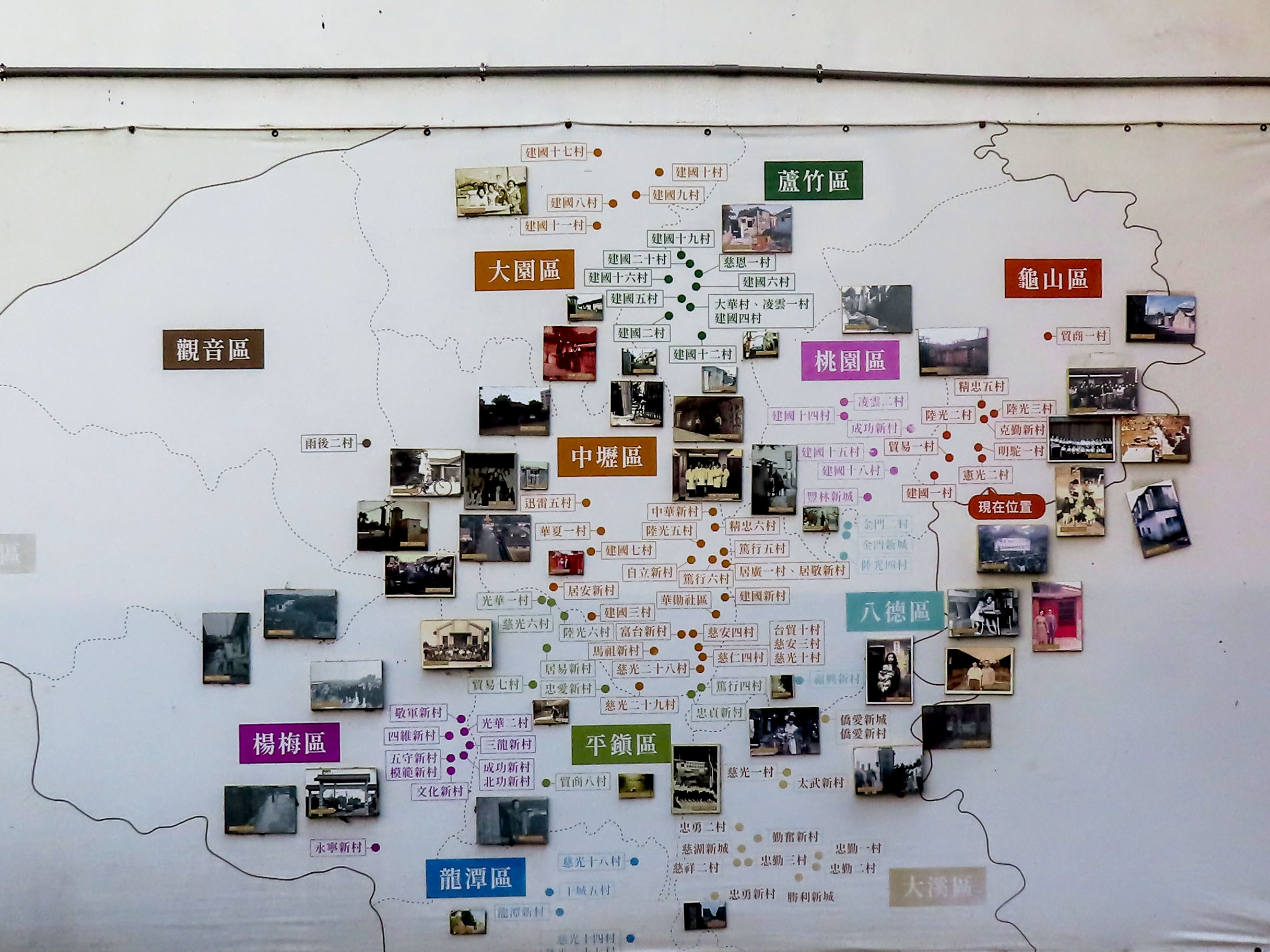 眷村故事館,早期是陸光三村的文康活動中心,是一棟兩層樓的西式建築,洗石子的外牆呈現垂直與水平的線條,具有現代主義的建築風格。 陸光三村源於民國38年(1949)中華民國政府遷臺,為了解決軍官兵眷居住的問題,由蔣宋美齡女士主持的婦聯會發起,華僑與工商界集資興建,於民國55年(1966)興建完成。民國85年(1996),眷村改建國宅為千禧新城,僅將文康活動中心保存下來。桃園市政府文化局於民國93年(2004)登錄為歷史建築,定名眷村故事館,民國104年(2015)開館營運。藉由故事館的空間,除了提供居民們回顧眷村生活點滴,並傳承及見證龜山地區的歷史流變。 館內收藏的文物、器物及老照片,大部分都是原住戶所捐贈。一樓左側的客廳,呈現民國50-60年代眷村純樸的生活樣貌,箱型的電視機、黑膠唱片、電話、老舊的收音機、明星花露水、各式經典瓷器的紀念酒等。琳瑯滿目的文物散發出濃濃的人情味,也訴說著一個時代的故事。 右側時光走廊,各式生活標語及宣傳口號,是時代思想改造,正面宣傳和反向強化運動的代表。二樓規劃特展區及閱讀區,更多元呈現眷村文化的特色。此外,故事館也會藉由不定期的特展、講座、工作坊及每年10月結合眷村文化節的活動,延續眷村文化的歷史記憶及精神。 參考資料: 國家文化資產網 https://nchdb.boch.gov.tw/assets/overview/historicalBuilding/20040303000004 龜山鄉千禧新城大榕樹旁眷村故事館 https://lov.vac.gov.tw/zh-tw/village_c_3_99.htm?7