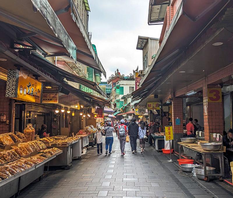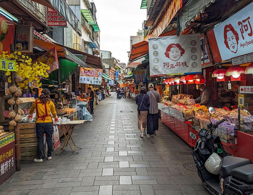 山老街為目前臺灣少數老街之一,也是北海岸地區最古老的老街,其歷史可回溯至清朝雍正末年,由福建移民所建,為昔日金包裡住民主要的農產、漁獲集散地。街區以慈護宮為起點,長約一公里,以金聲橋為界,分為頂街與下街,老街建築為傳統式連棟店鋪住宅,呈現面窄的長條形街屋,目前老街仍有數間閩式住宅以及部分日治時期洋樓立面建築,並且保留著「亭仔腳」的建築特色。