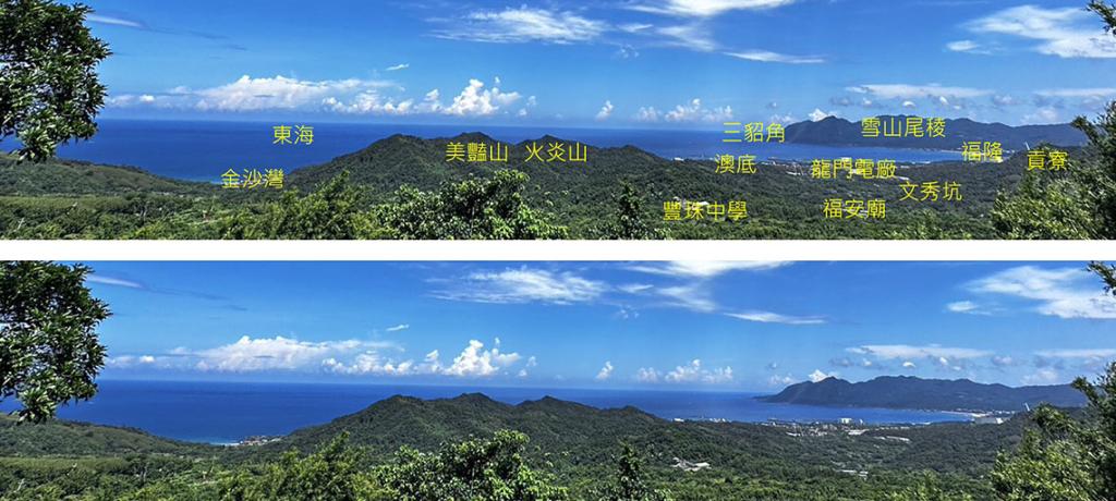 雞母嶺水梯田尚未荒廢前,幾乎隨便站在任何位置都可以看到海,沿著海岸線一一辨識,金沙灣、美艷山、火炎山、福隆、卯澳、澳底、三貂角、睡美人(登山客稱為雪山尾稜)…...山海全景美不勝收。