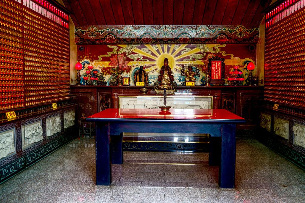Chinghai Temple in Lujhou primarily enshrines the Water Immortal King, with accompanying worship of the Emperor Wen Chang and the Saintly Emperor Guan.