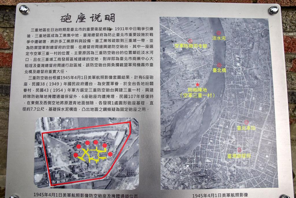 三重空軍一村位於三重區正義南路,二戰期間曾是日軍高砲陣地,國民政府來臺後成為空軍高射砲兵駐紮地,現今成為北部僅存的防砲眷村。