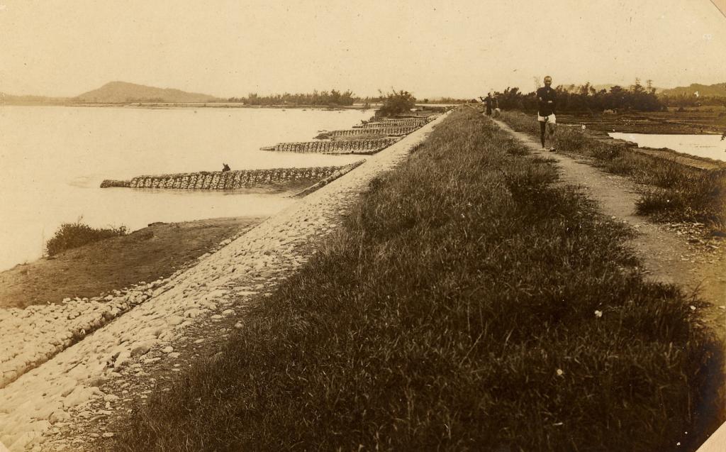 「新店堤防一號」是近代臺北治水思考落地的新店證據。1912年洪災後,臺北廳帶著總督府土木局、稅關與商會代表溯河實勘,從輪中堤到疏濬、築港等方案熱烈爭論;翌年十川嘉太郎提出〈臺北洪水防禦案〉,正是在這股「官方×民間」共同參與下成形。雖然輪中堤僅完成西、南兩側便於1916年停擺,總督府仍以「成效已現、視財政續辦」作結,並以雙連埤為市區滯洪池。其後十餘年,淡水河本流與支流沿岸陸續增補護岸,但多為零星構造,直到1920、1924年再度大水,才又推動局部加強。