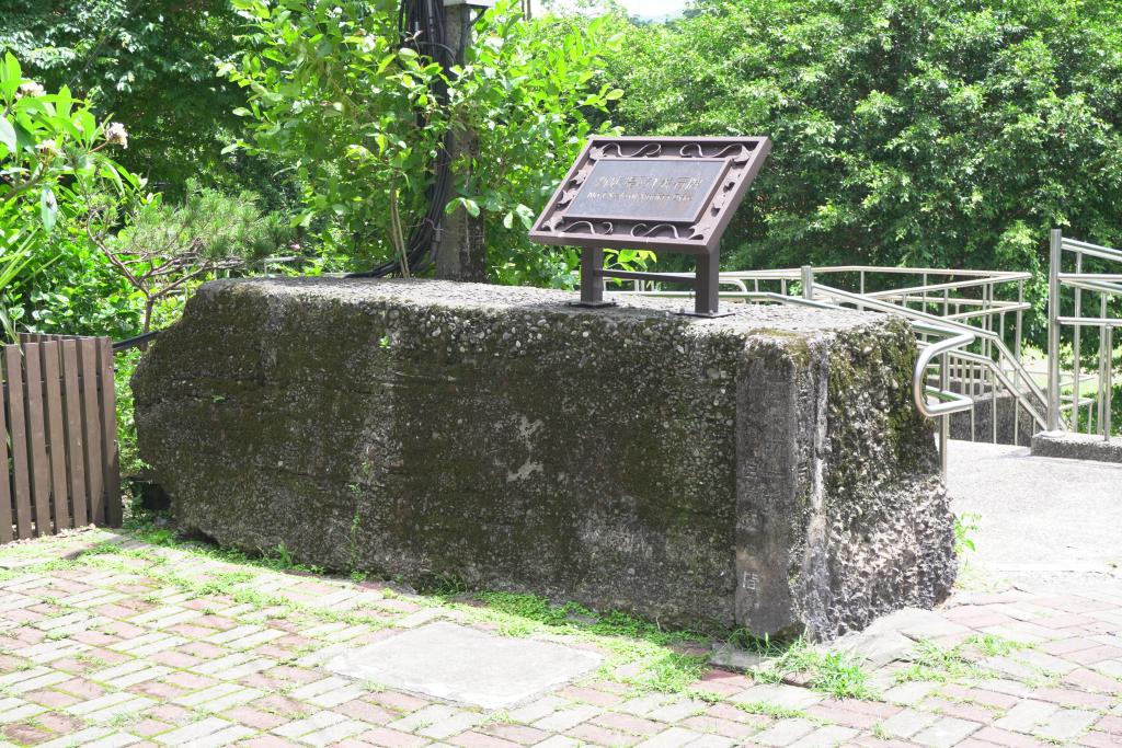 新店一帶便是受災最深的現場。1924年8月初北臺灣連雨五日,新店溪暴漲淹沒碧潭兩岸,激發了「就地築堤」的緊急工程。總督府內務局於同年1月動工新店溪堤防,6月13日竣工,總長計1313間(約2.39公里),分為一號與二號兩段。其中「一號堤防」環繞新店街,座落碧潭沿岸,採石堤配混凝土胸牆,長468間(約0.85公里),意在以最短線守住聚落核心。水利規劃分署典藏的《大正十四年九月暴風雨淡水河沿岸概況攝影》仍留存1925年前後的舊照,可對讀堤線與街廓的相依。今日走讀至開天宮下方、大坪林圳出水口附近,仍可見紀念石碑,碑心刻「新店堤防一號 巨離50間」,右側署名「總督府內務局」,清楚記錄這段由水災催生、以工程回應的治水歷史。這不僅是一段堤防的故事,也是新店如何在「河勢—聚落—制度」三者之間尋找安全邊界的實例。