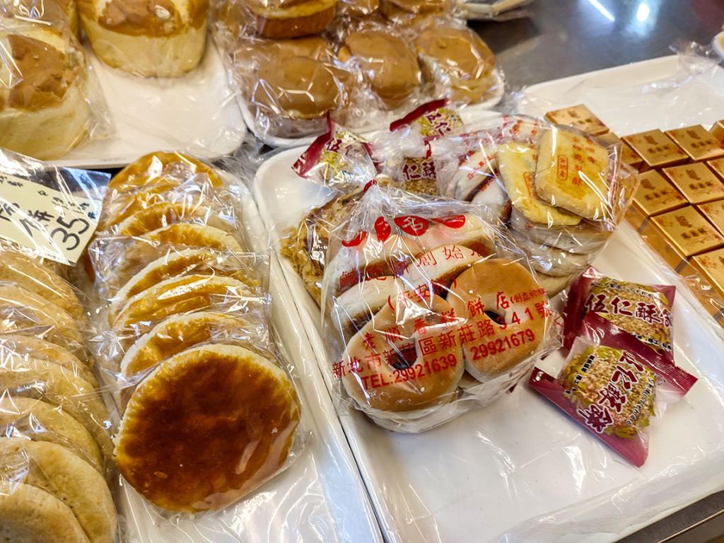 店內各式的傳統糕餅種類繁多,最具特色的莫過是平價美食-鹹光餅與金牌鳳梨酥。鹹光餅又稱為「平安餅」,早年信眾多會購買鹹餅去廟裡祈求平安,再將餅分給鄰居朋友,一起將平安傳遞出去。製作方式主要以麵粉加上老麵、鹽、糖、屬於全天然的素材,經過四至五小時的醒麵,再烘烤出單純的美味。