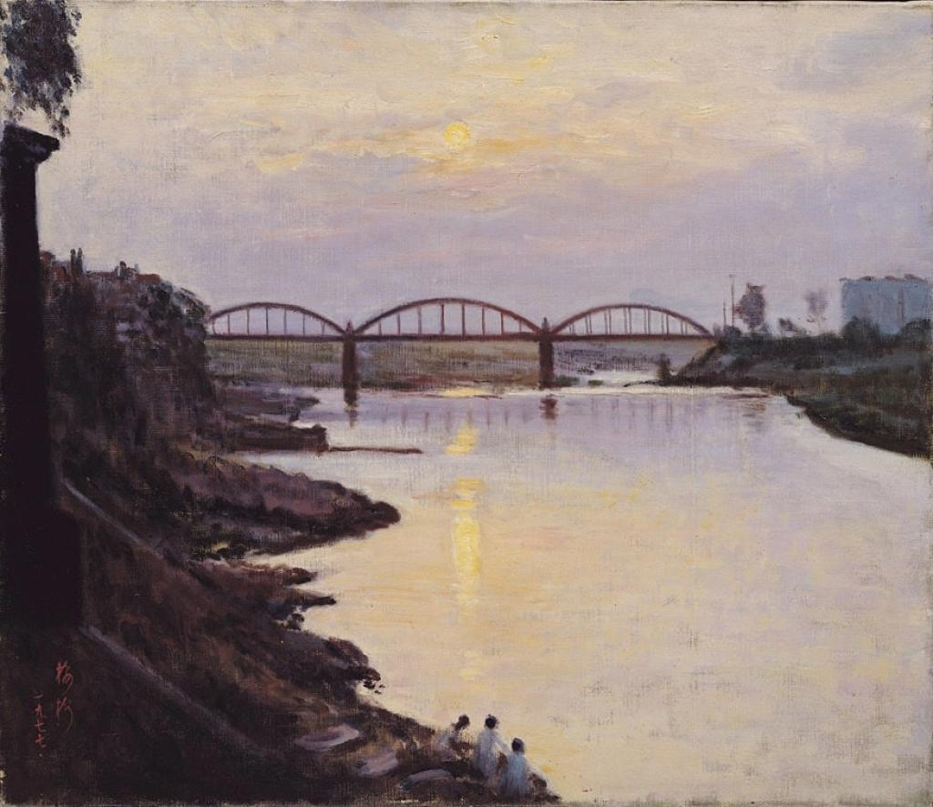 李梅樹於1977年油畫作品《三峽春曉》,尺寸為10F(45.5×53cm),描繪清晨時分太陽升起,薄霧籠罩三峽河與三峽拱橋,河畔有浣衣婦女的景象。畫作中多使用細碎短筆繪製景物,讓畫中物體較無明顯輪廓線,表現出清晨空氣氤氳的效果。其中河畔土地、小坡與遠方建物本身的顏色並不凸顯,取而代之的是被陽光照射成暗紅褐色、灰藍色的模樣,充分表現太陽剛升起時,陽光將大地染色的光景,此種做法帶給觀者一種諧和、平靜之感。