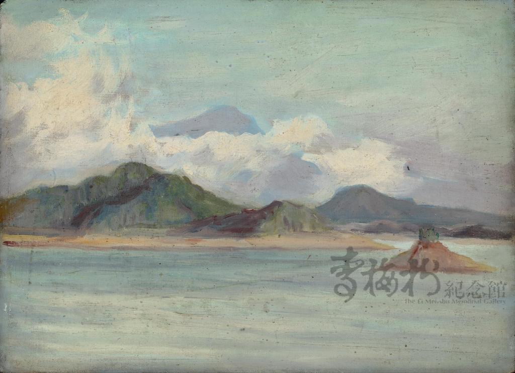 中景山脈右前方有一小島,推測為拉魯島(舊名光華島)。關於過去畫家們對於拉魯島的描繪,如平川知道(1904—?)《風景》(1936,第十回臺展)、那須雅城(約1880—?)《日月潭》(1929,第三回臺展)、陳銀輝(1931-2024)《日月潭風光》(1975)等作品中也有出現。