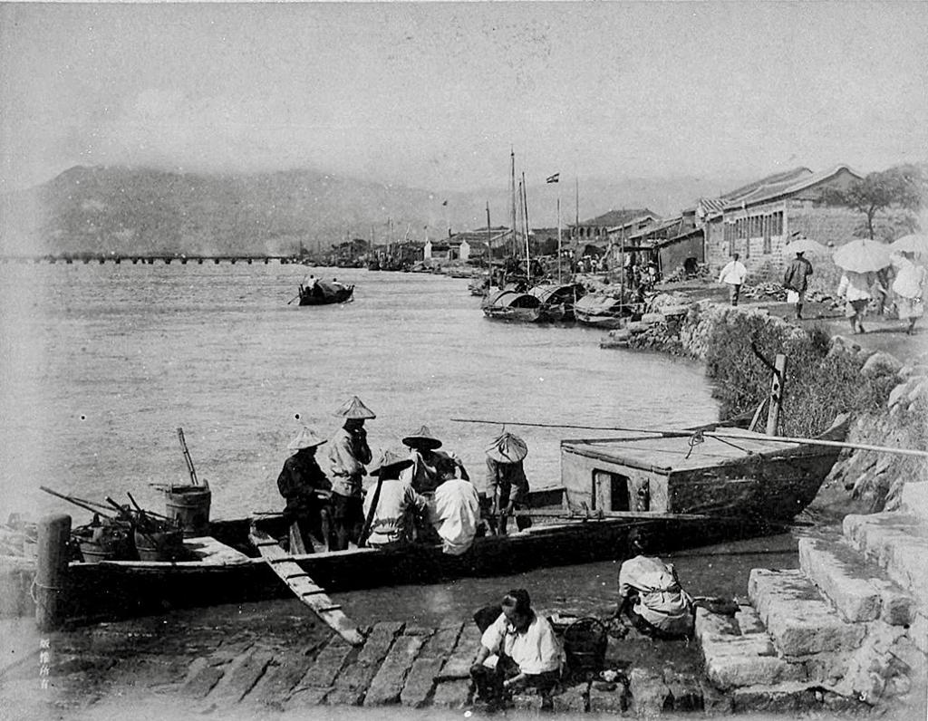 大稻埕碼頭的治理,從清末的「港務優先」起步:劉銘傳時期以建昌公司為引擎,帶動臨河低地填築、鋪設街廓與築堤,新市街(港邊街、千秋街、建昌街、六館街)逐步成形,奠定碼頭與市街共構的基礎;1896年的影像已可見沿岸出現低水護岸與碼頭設施,用以維持靠泊與裝卸的連續性。