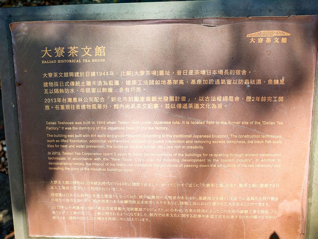 In 1899, the Mitsui Gomei Company of Japan came to Taiwan to expand tea gardens and established the Daliao Tea Farm in the Zhulun area of the Sanxia District. At that time, a large number of Assam tea trees were planted to produce the famous Nitto Black Tea. Later, a traditional Japanese-style wooden and earthen wall building was built as a Japanese tea farm. The long dormitory is the Daliao Tea House. Later, Taiwan Agriculture and Forestry took over and renovated the teahouse, retaining the Japanese architectural features and renovating the old ones to restore the teahouse's splendor.