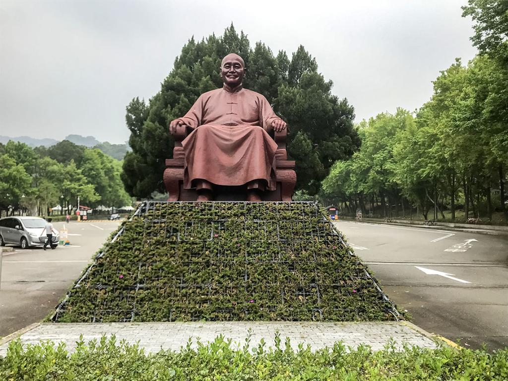 慈湖遊客中心位於前慈湖區,入口處有桃紅色的蔣介石銅像,後方是停車場。停車場旁邊的遊客中心,是遊客到慈湖謁陵的前哨站,外觀是古色古香的閩南式建築。遊客中心內部陳列兩蔣時期的各項文物展覽與歷史影片介紹,也提供兩蔣紀念品供遊客選購。
