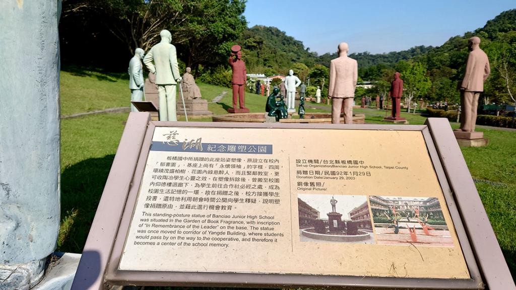大溪慈湖紀念雕塑公園就是位於牛角湳埤和慈湖停車場旁,園區內共擺放了二百七十八件由全國各地捐贈而來的蔣公銅像供遊客參觀,也讓由世界各地而來的遊客,緬懷蔣公過去的豐功偉業,是全國唯一的雕像公園。 銅像中有大家熟悉的全身、半身像,多半由學校或機關捐贈,也有坐姿與騎馬的塑像,每一座雕塑皆具藝術價值。整個園區以步道方式串聯銅像的擺放位置,還有庭園造景及小橋流水,相當雅致。除了蔣公雕像之外,園區內尚有國父孫中山先生銅像數座,以及蔣經國先生銅像三座。由於銅像公園位於草嶺山下,水源豐沛,園區旁可見到數個湧泉地景,是附近居民農田用水及洗滌衣物的天然水源。