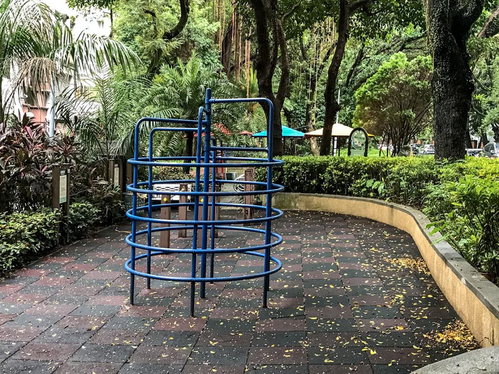 由於萬年公園緊鄰萬福國小,每到放學時間,公園成為小朋友們第二個運動遊樂場,除了翹翹板、爬架、溜滑梯、搖搖樂等,還有其他公園沒少有的益智滾球組、攀岩牆等,地面是一片沙地與彈性地墊,不怕小朋友因掉落而受傷,是個相當貼心的設計。