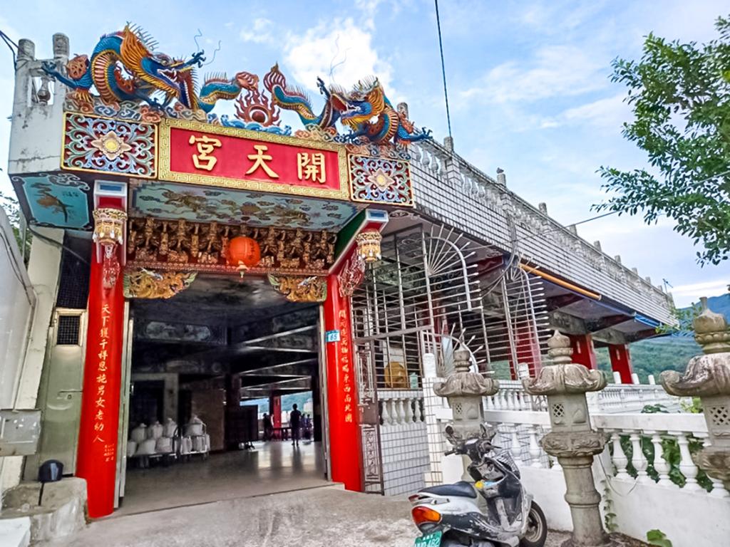 位於「新店路」及「新店後街」交會處,現今的「新店國小」路底,有一座威靈顯赫之古廟,名為「開天宮」。是新店地區最古老的廟,草創立於清乾隆16年(1751),原名「開天盤古帝王祠」,是當初闢建瑠公圳時,祈求磐古大帝神力保佑水圳工程順遂而興建的。