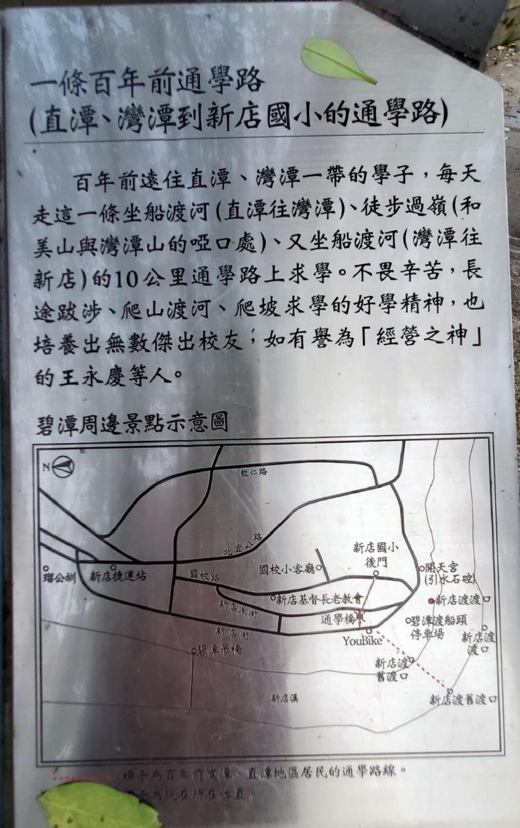 新店渡渡口,位於新店區新店路69號,又稱碧潭渡船頭。探究新店溪的渡船歷史,始於光緒7年(1881)。早年碧潭吊橋尚未興建之前,新店渡是進入灣潭、直潭、塗潭、屈尺以及安坑等山區的交通樞紐。四零年代,新店溪中上游計有:挖仔渡、新店渡、直潭渡、小粗坑渡、灣潭渡、塗潭渡、礦窯渡、小坑渡、廣興渡等九個渡口,聯繫著新店溪兩岸的交通與人民生活,後來因陸上交通建設陸續完成,民眾轉而依賴更便利的運輸方式,渡口逐一凋零,如今新店渡為新店溪流域僅存的人力擺渡渡口。