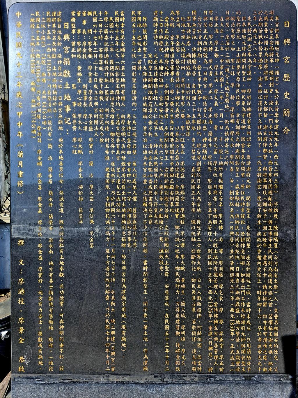 註4:以上主要參考「日興宮歷史簡介」勒石與《新店市志》。日興宮應是臺灣北部唯一以供奉謝府元帥為主的廟宇,每年農曆五月四日謝府元帥的聖誕即為廟慶,廟方會舉辦隆重的祝壽法會。