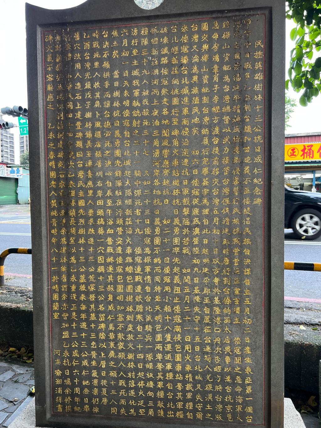 新完工的廟內匾額上書寫著「忠義千秋」,兩側的楹聯也寫道:「義魄忠魂六壯士,保鄉抗敵大英雄」,表達了對他們的崇敬與懷念。同樣是乙未之役時,在樹林區一株老樹蔭下的十三公,石碑上書「乙未抗日先烈樹林十三公之墓」,碑座上題字:精神不死。都是國人表達對他們的敬意與感念。