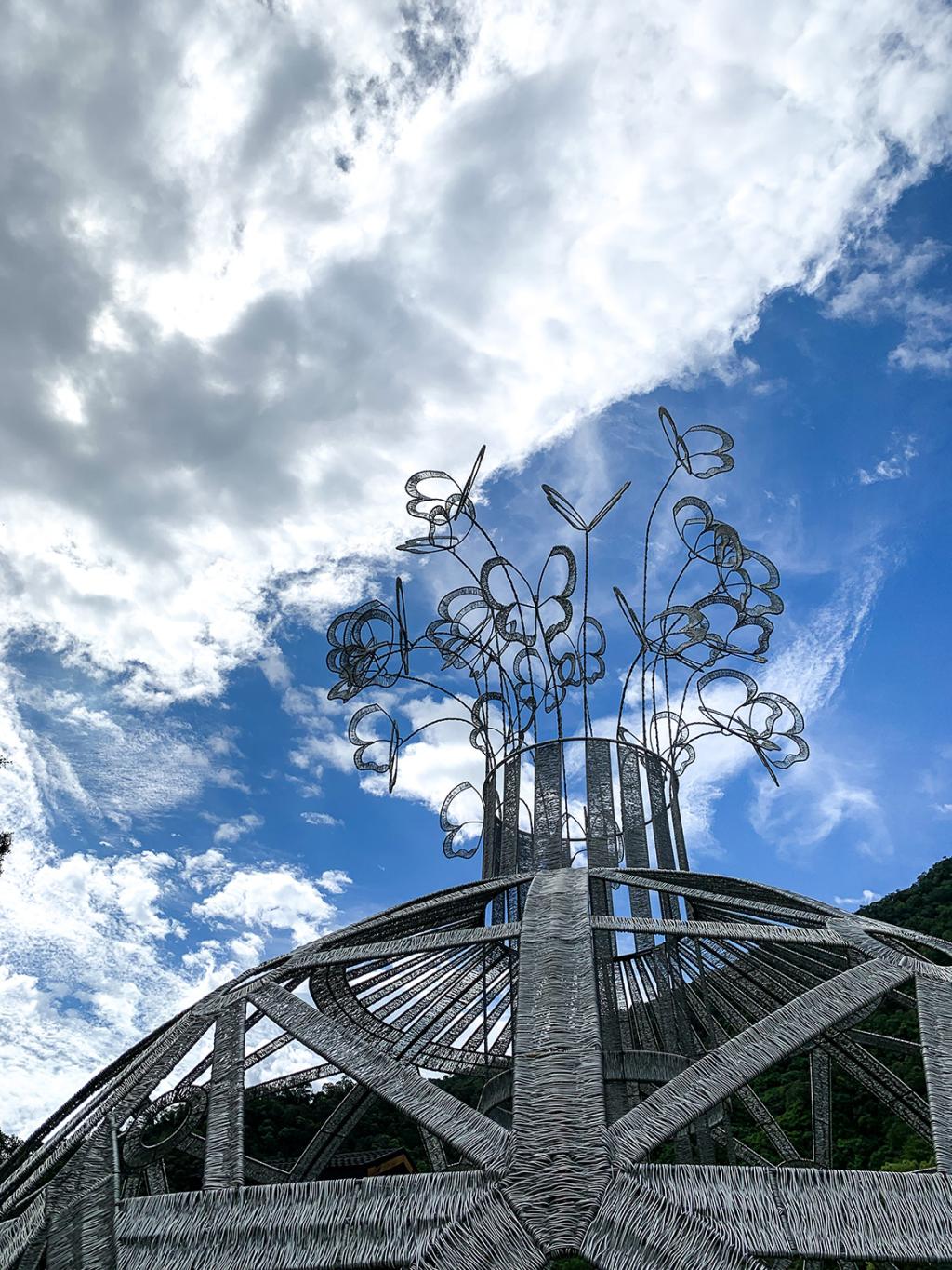 "Secret Garden" stands at the most obvious entrance in the park, where it used to be a migration path for the euploea butterflies to fly north, leaving their wintering habitat before the cultural park was constructed. Every November to March, millions of euploea butterflies follow the memory of their ancestors, and fly to the Maolin Eco Park for the winter. By recalling the flight path of the butterfly and the special connotation of the butterfly in Paiwan and Rukai culture, the artist wanted to convey the ""symbiotic"" relationship between human beings and nature.