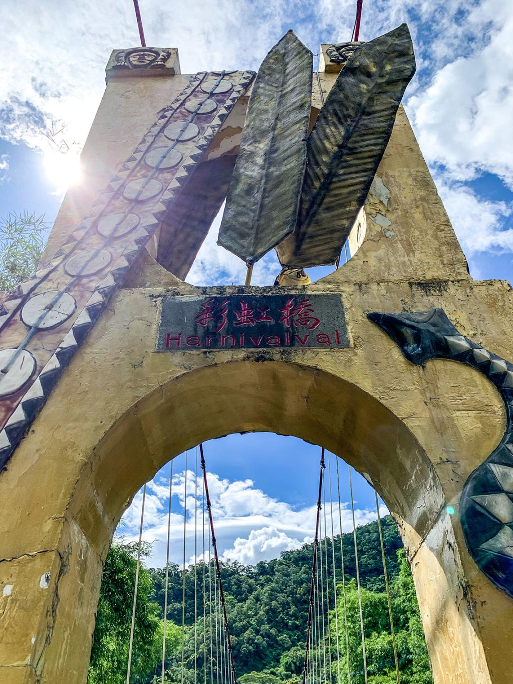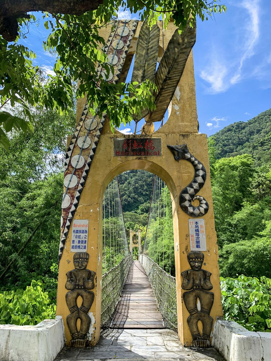 The special feature of the Rainbow Bridge is that the exterior has traditional accessories of the Paiwan and Rukai people. In addition, the bridge is named after the Bunun word for rainbow, "Hanivalval", which symbolizes connection and relationship.