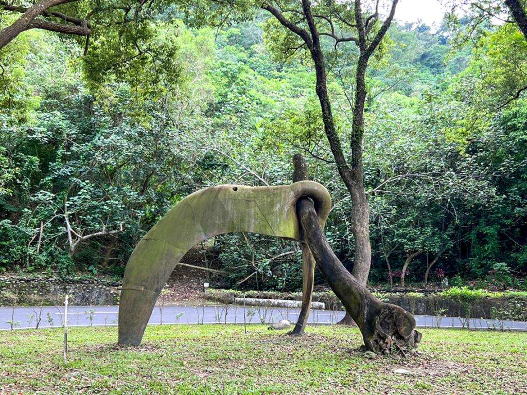 The materials used in this artwork are iron and beech wood. The sculpture made of iron is in the shape of a piece of an Amis clay pot. The pot symbolizes women, because traditional pottery is made by women and has various functions. The role of the beech wood, the "pestle", symbolizes the male and also represents an important pillar of the family.