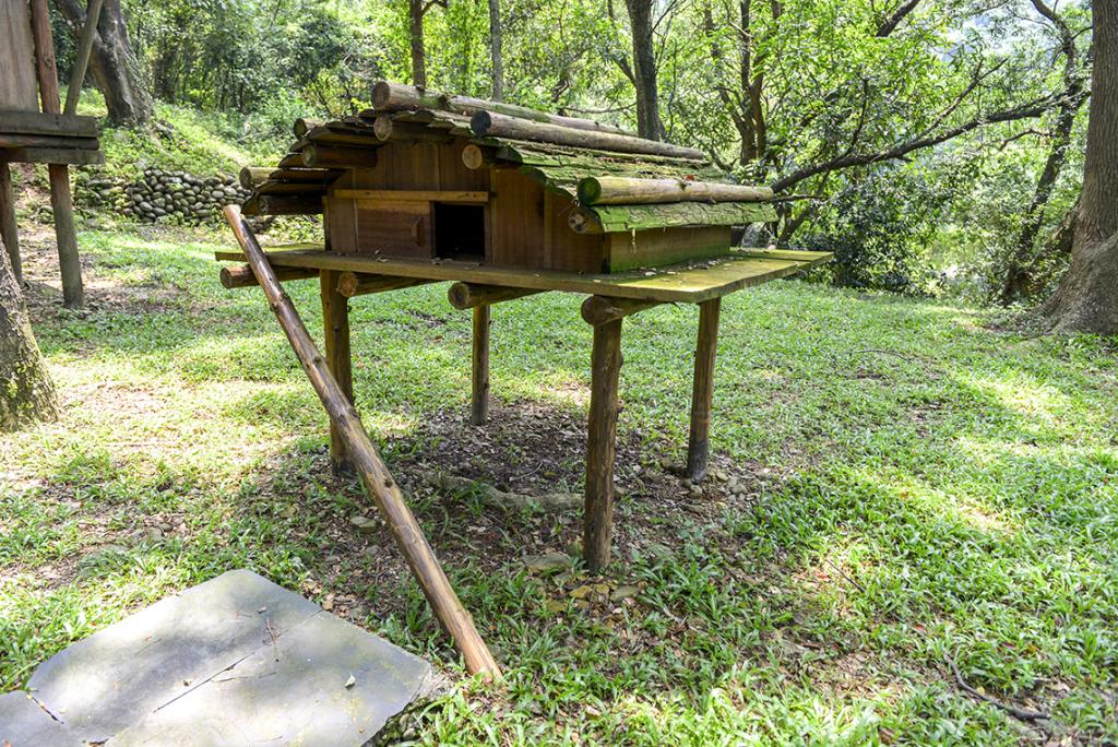 傳統穀倉以木為柱,四壁則就地取材,係高架式木板建築。四方的支柱有防鼠板裝置,以防止鼠類偷吃存糧,為原住民智慧的表徵。
